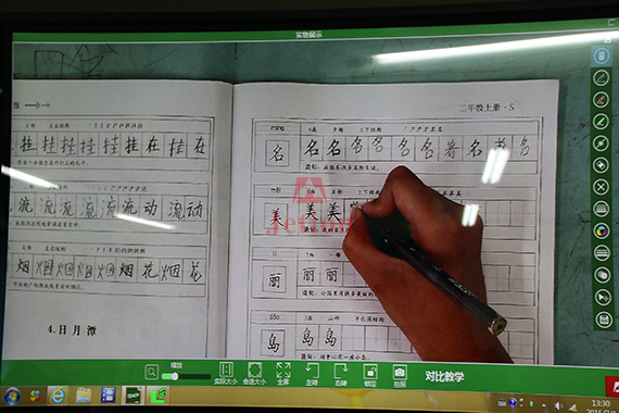 下面是沈陽大東三校的語文課上,馬老師用吉星展臺展示一位學生寫作業(yè)的過程,同學們通過大屏幕觀看。老師進行詳細的講解,讓同學們能夠清晰的了解到書寫的要點和文字的詳細構造。