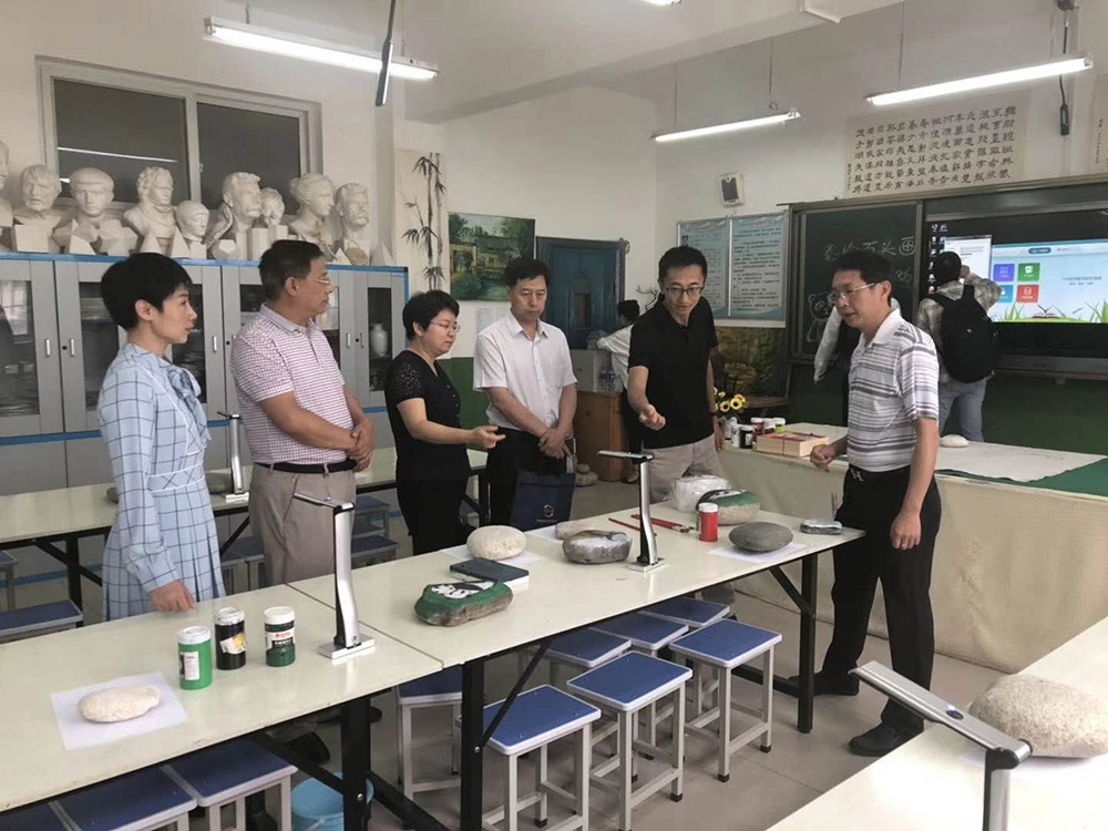 ▲中央電化教育館黨委副書記李萍參觀未來美術(shù)教室