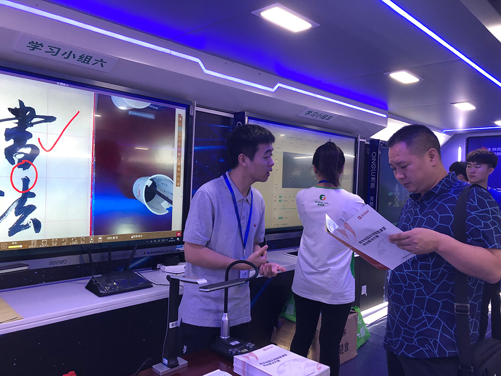 “創(chuàng)新公益行”大篷車首站在楊凌邰城實(shí)驗(yàn)學(xué)校正式亮相,啟動(dòng)儀式結(jié)束后,各級領(lǐng)導(dǎo)、師生紛紛走進(jìn)車內(nèi)進(jìn)行參觀體驗(yàn),吉星為大家?guī)碜钚碌闹腔坌@全互動(dòng)系統(tǒng)、未來智慧書法教室等創(chuàng)新教育信息化應(yīng)用,贏得了前來參加活動(dòng)的各位領(lǐng)導(dǎo)和師生的認(rèn)可。