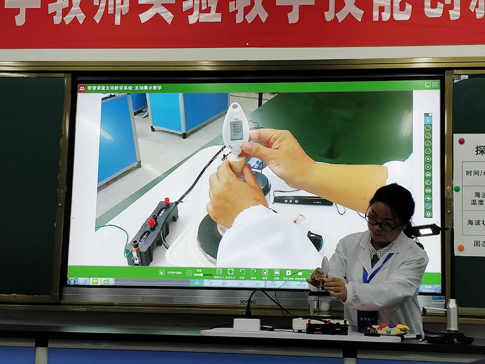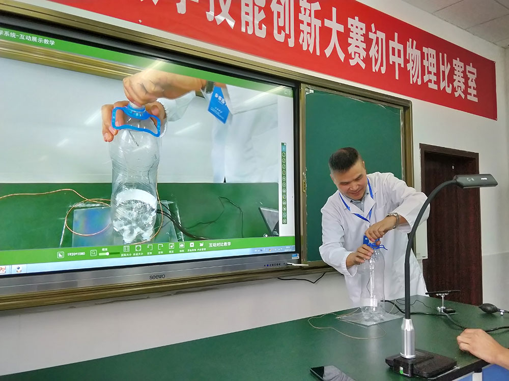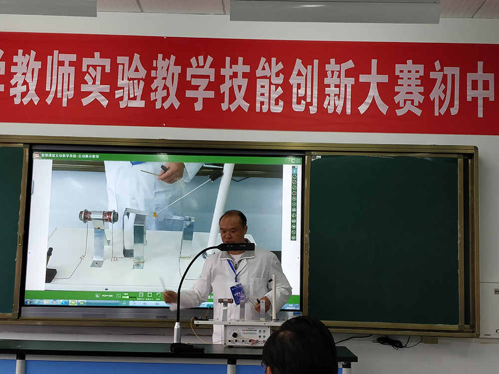 其中初中物理組的老師在比賽現(xiàn)場(chǎng)運(yùn)用吉星智慧實(shí)驗(yàn)室互動(dòng)教學(xué)系統(tǒng)進(jìn)行實(shí)驗(yàn)操作。