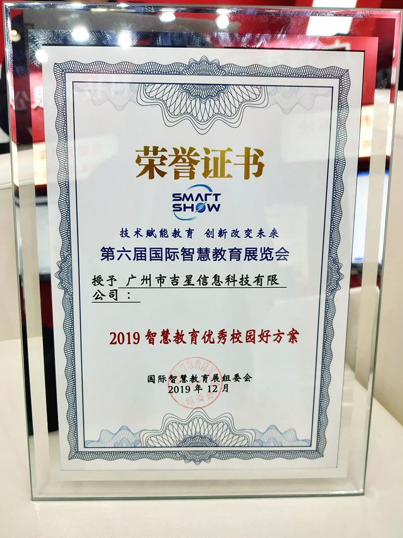 “技術賦能教育、創新改變未來”,在第六屆校園好方案征集評選中,吉星憑借全互動智慧課堂方案脫穎而出,榮獲 “2019智慧校園好方案”殊榮!