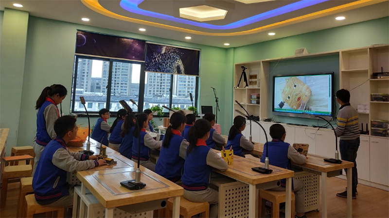 創客老師通過無線互動終端將實時的創客示范教學過程清晰的展現給學生,學生可在自己座位上進行實時觀看學習,無需圍觀學習。