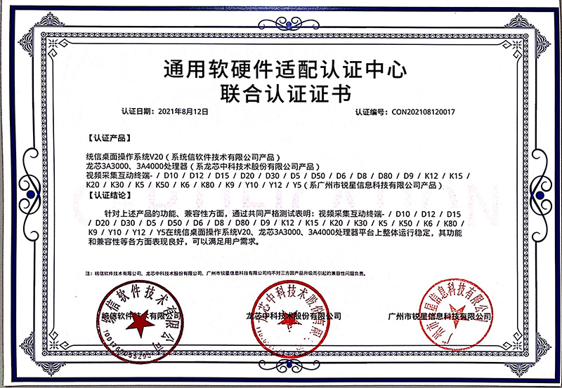 龍芯認(rèn)證證書(展示互動(dòng)寶、無線微錄儀)
