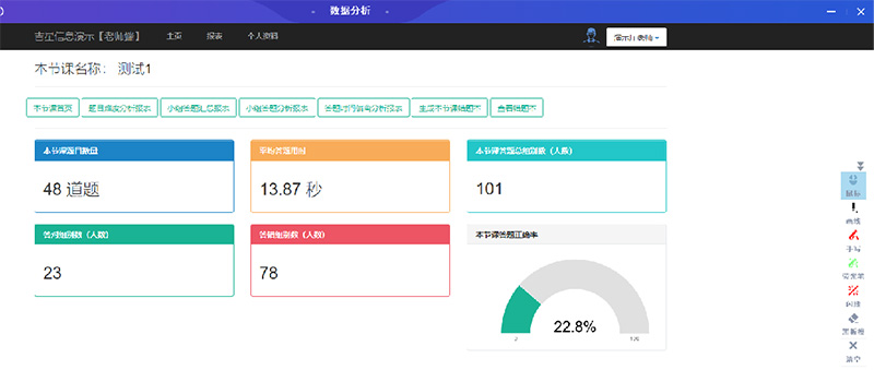 吉星強交互智慧課堂所支持的功能中具有【搶答投屏】、【課堂測驗】兩大功能,這兩個功能都非常適用于課堂的日常教學。