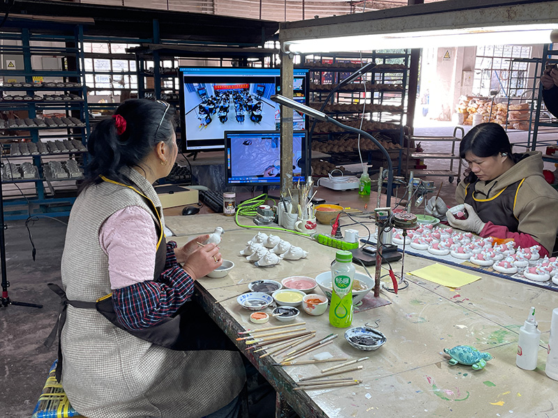 在小鎮(zhèn)中,非遺技藝傳承人展開(kāi)了傳統(tǒng)技藝的教學(xué)。在陶瓷坯體上,教師耐心地勾勒著細(xì)節(jié),不同的顏色被一點(diǎn)點(diǎn)涂抹到陶瓷上,展現(xiàn)出了藝術(shù)的美麗。