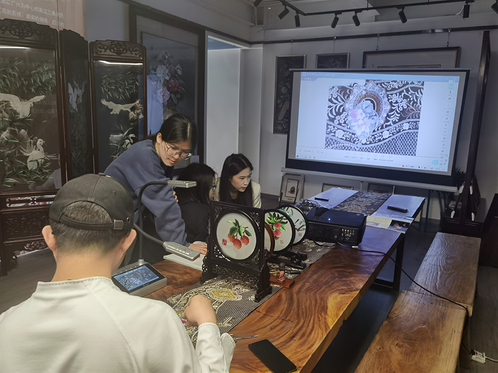 1月4日,在廣繡培訓(xùn)基地,吉星無線全錄播就在現(xiàn)場展示了廣繡教學(xué)的新可能。由廣州市非物質(zhì)文化遺產(chǎn)廣繡項(xiàng)目代表性傳承人王新元大師現(xiàn)場展示廣繡的刺繡針路和繡法技巧。