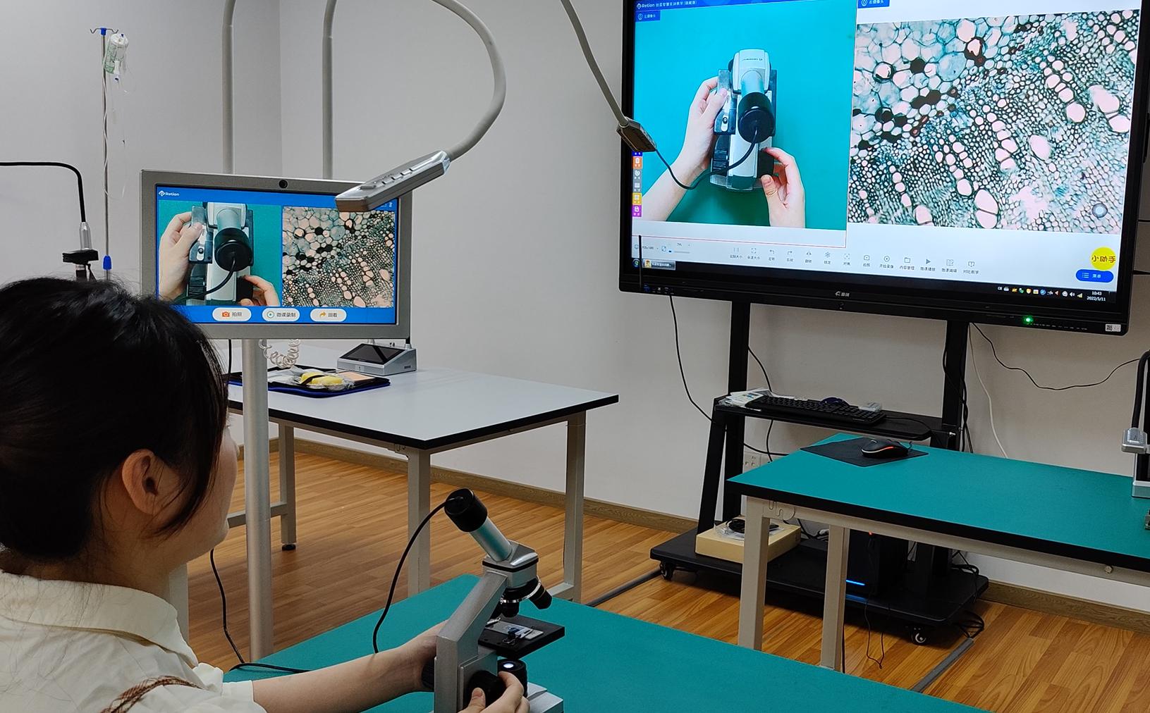 推車主體設有HDMI接口,可直連電視,將實時畫面投至大屏。同時,可輕松連接攝像頭、顯微鏡、心電圖、耳鏡等儀器儀表,顯示的畫面可在推車屏幕預覽,同步可投屏一體機可視化展示,復雜的設備操作變得直觀易懂,讓學生快速掌握設備要領