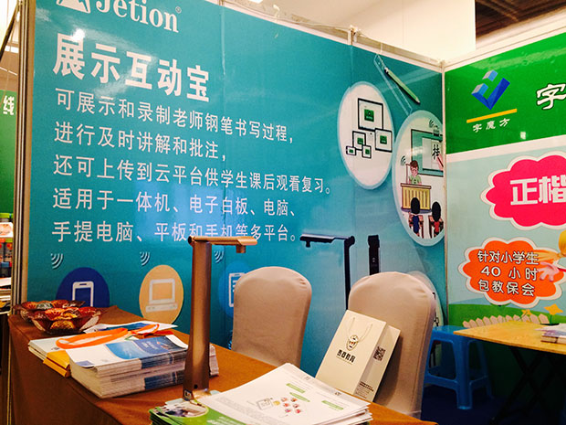 展會上吉星無線展臺用于硬筆書法培訓項目展示