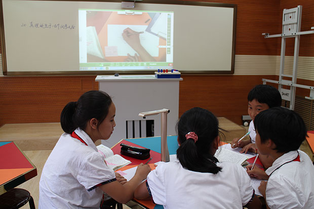 “吉星展示互動課堂方案”適用于各種語數英的培訓項目,特別是分小組的學習模式,這種方案讓老師走下講臺,將無線展臺移動到學生課桌上展示學生的學習過程、小組學習對比、小組學習討論等,學生在自己的座位上就可以展示和講解自己學習過程和作業,向老師和同學分享學習成果。最終形成師生、生生互動的新模式。