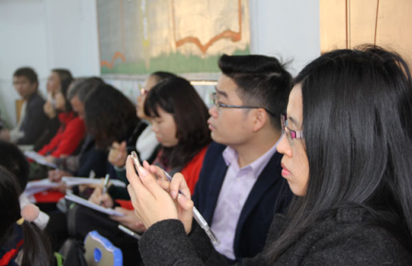 現(xiàn)場(chǎng)同時(shí)上演并同期直播的8節(jié)課,吸引了老師們的認(rèn)真聽(tīng)講、觀察和記錄,連專家們亦是如此。